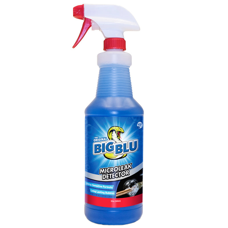 The Big Blu range of bubble leak detectors is used by OEMs and industry professionals worldwide. These strong, persistent film forming liquids are the only bubble/foam indicators capable of detecting micro gas leakage as small as 18.5 grams per year. Big Blu is certified for use on any grade of gas, including hospital-grade oxygen. Big Blu is food industry compliant (NSF certified), biodegradable, non-toxic, non-flammable and does not contain chlorine, aliphatic amines, or ammonium compounds.