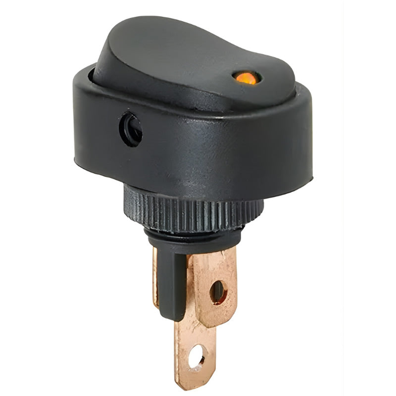 This compact illuminated rocker switch is ideal for controlling 12V DC circuits in automotive, marine, and DIY electrical applications. With a simple ON-OFF function and amber LED illumination, it provides clear visual feedback and dependable performance. The oval design includes a keyhole slot to prevent rotation during installation.