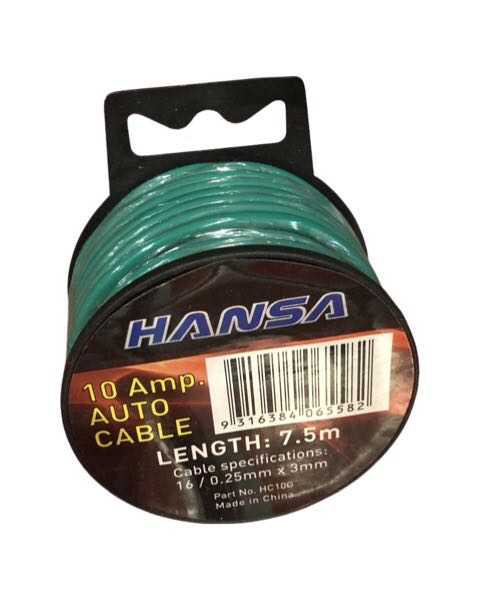 10 AMP AUTO CABLE 7.5M - 16/0.25mm x 3mm GREEN